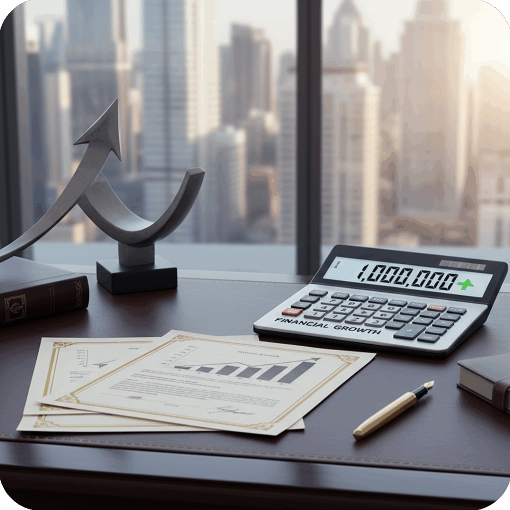 Partner banks provide leverage. You contribute a fraction of capital. Together, they form a personal wealth account that compounds predictably and tax-free — completely separate from your business operations.